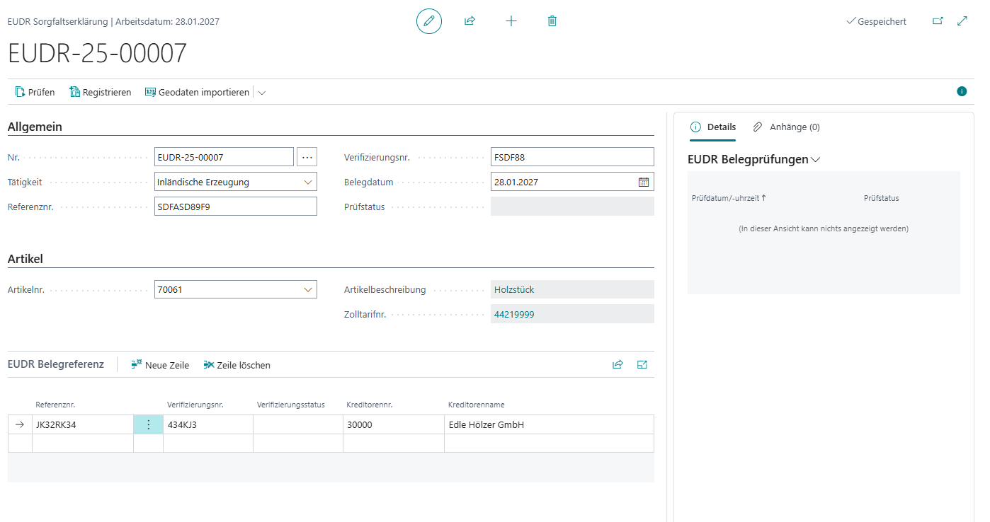 Erstellen oder prüfen Sie Ihre EUDR-Sorgfaltserklärung direkt aus dem Beleg heraus – ohne Systemwechsel.
